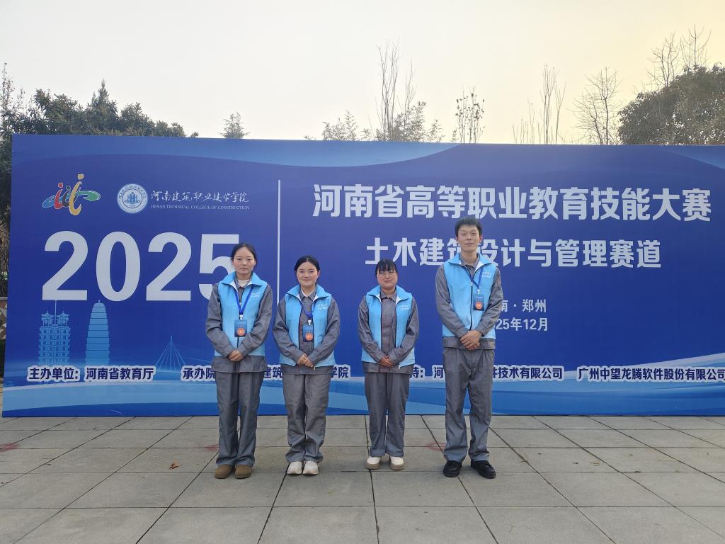 近日,由河南省教育厅主办的河南省高等职业院校技能大赛(土木建筑设计与管理赛道)在河南建筑职业技术学院圆满落幕。建筑工程学院陈培莹、魏纪明、李笑笑、王亚丹组成的 “纪盈笑丹”团队,凭借扎实专业技能与默契协作,在全省49支参赛队伍的激烈角逐中脱颖而出,荣获大赛三等奖。