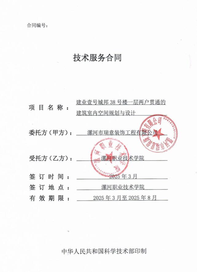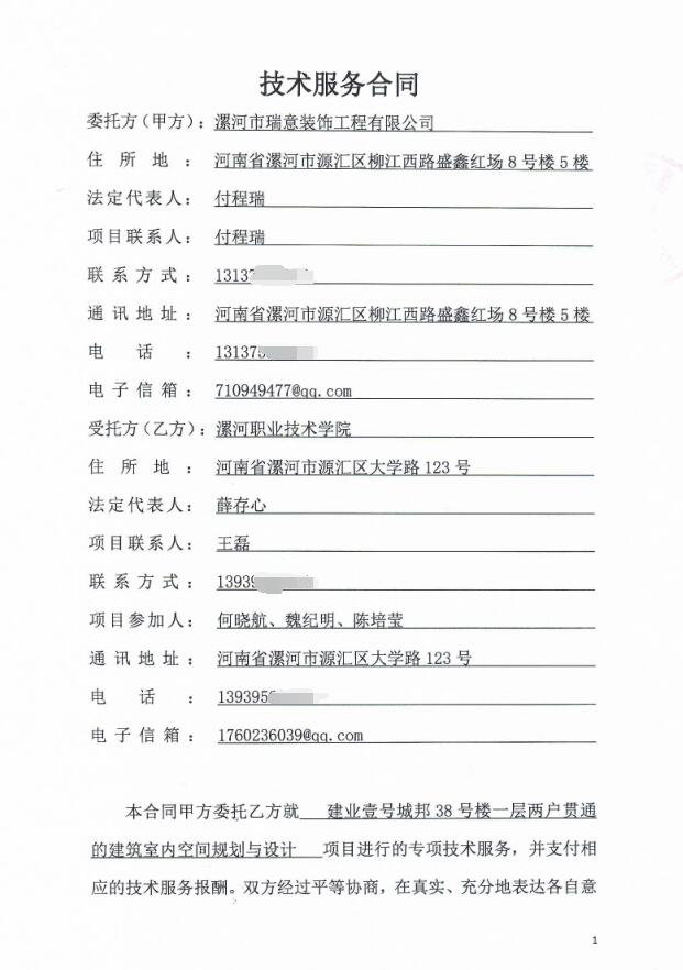 新型建筑工业化科技创新平台团队成员王磊、何晓航完成建业壹号城邦38号楼一层两户贯通的建筑室内空间规划与设计技术服务项目,合同金额43000元整。