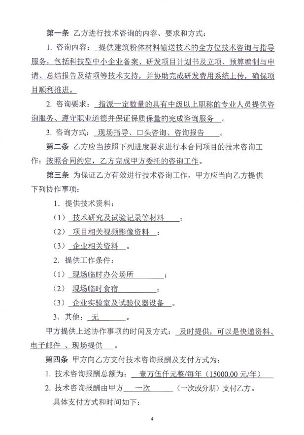 平台团队成员陈燕霞、段亚弟完成建筑粉体材料输送技术咨询服务项目