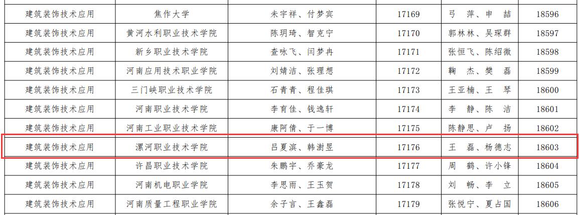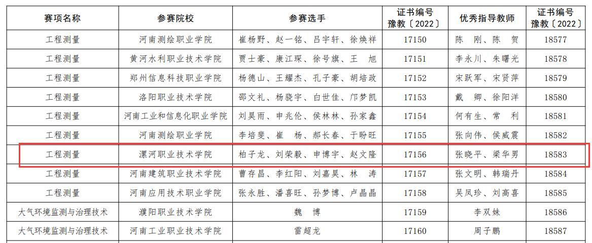 段亚弟、李冠磊老师指导学生在2021年河南省高等职业教育技能大赛建筑工程识图赛项中获得二等奖;张晓平、梁华男老师指导学生在2021年工程测量赛项中获得二等奖;王 磊、杨德志老师指导学生在建筑装饰技术应用赛项中获二等奖;姚艳红、邵明明老师指导学生在建筑工程识图赛项中获得三等奖。