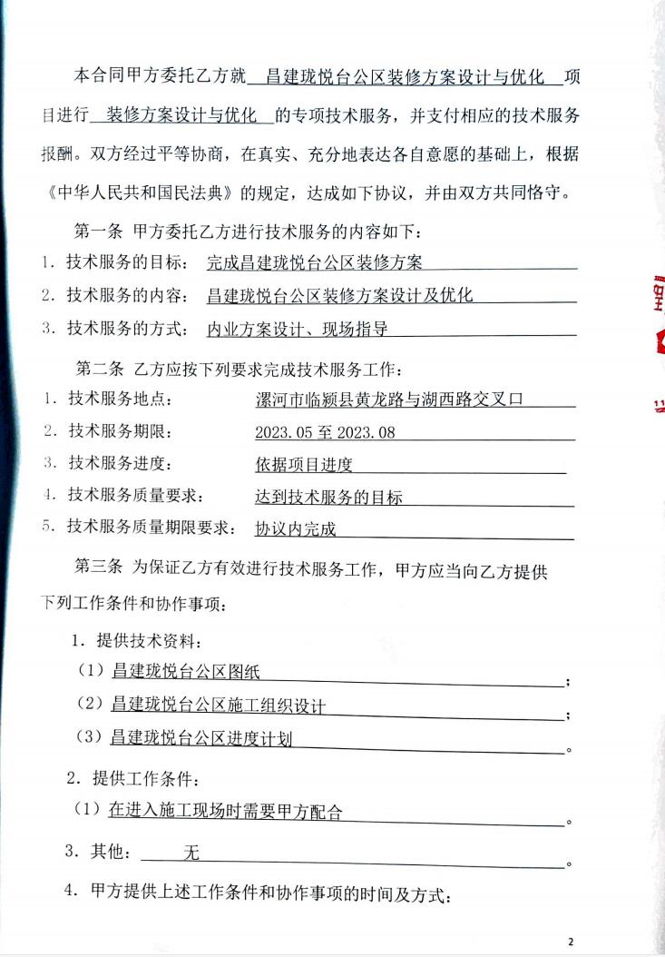 平台教师团队完成昌建珑悦台公区装修方案设计图优化技术服务合同